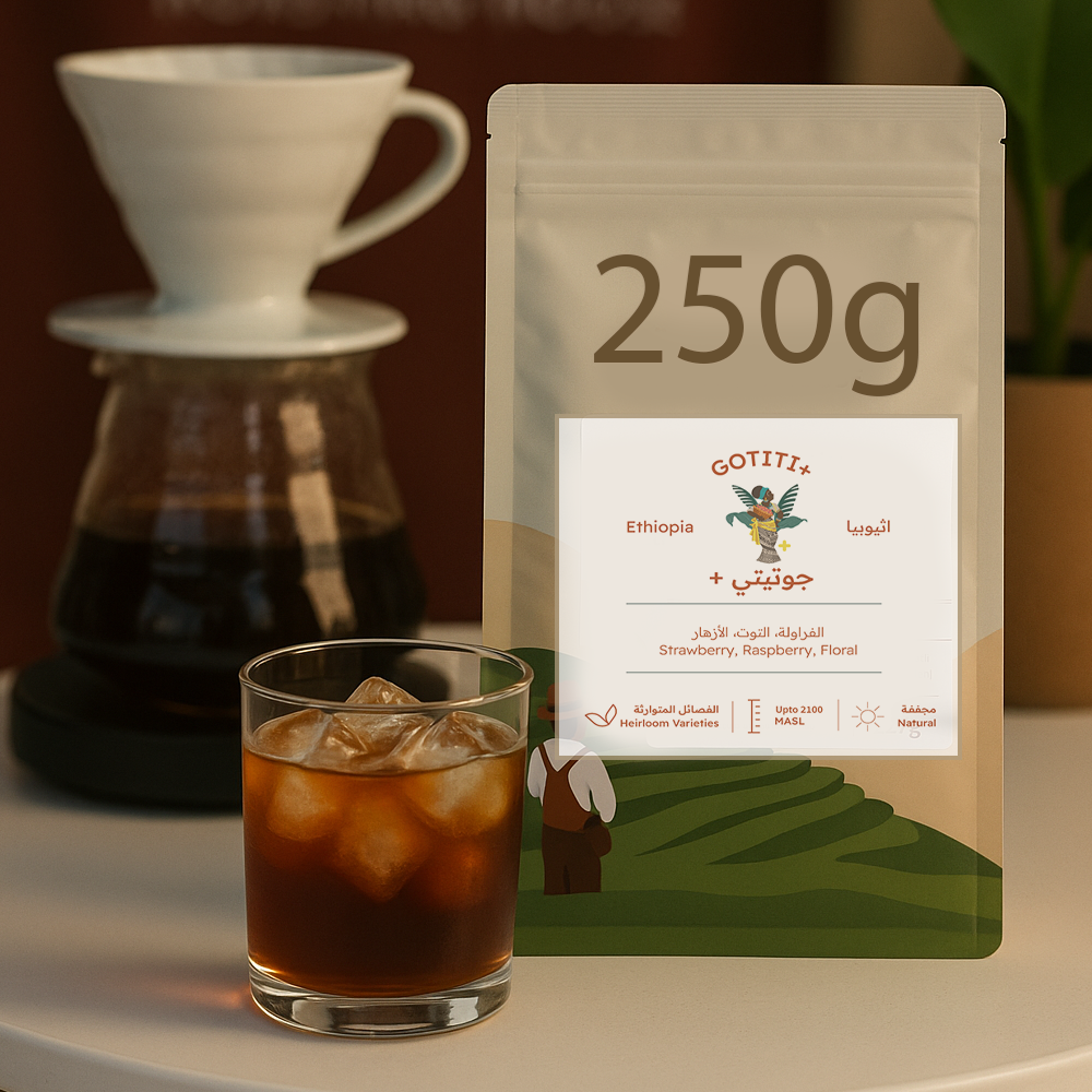 واستمتع بكوب من قهوة جوتيتي القادمة من قلب مزارع إثيوبيا، والتي تُعد من أجود سلالات البن المختارة بعناية. نكهاتها تنسج لوحة متكاملة من التوازن بين: